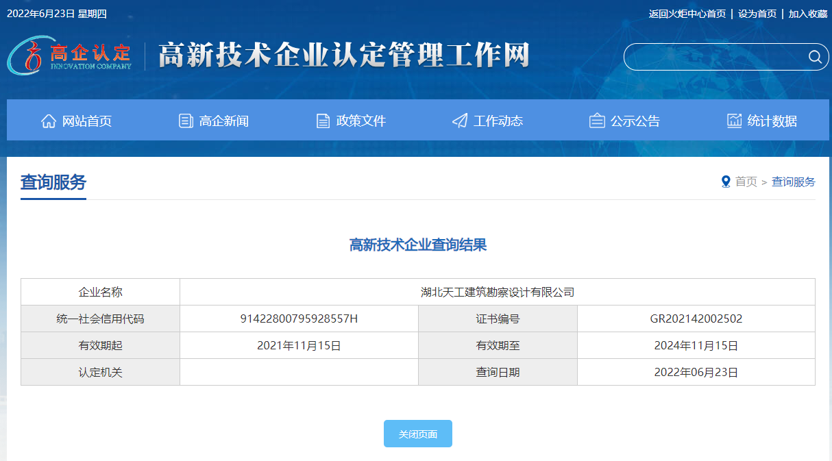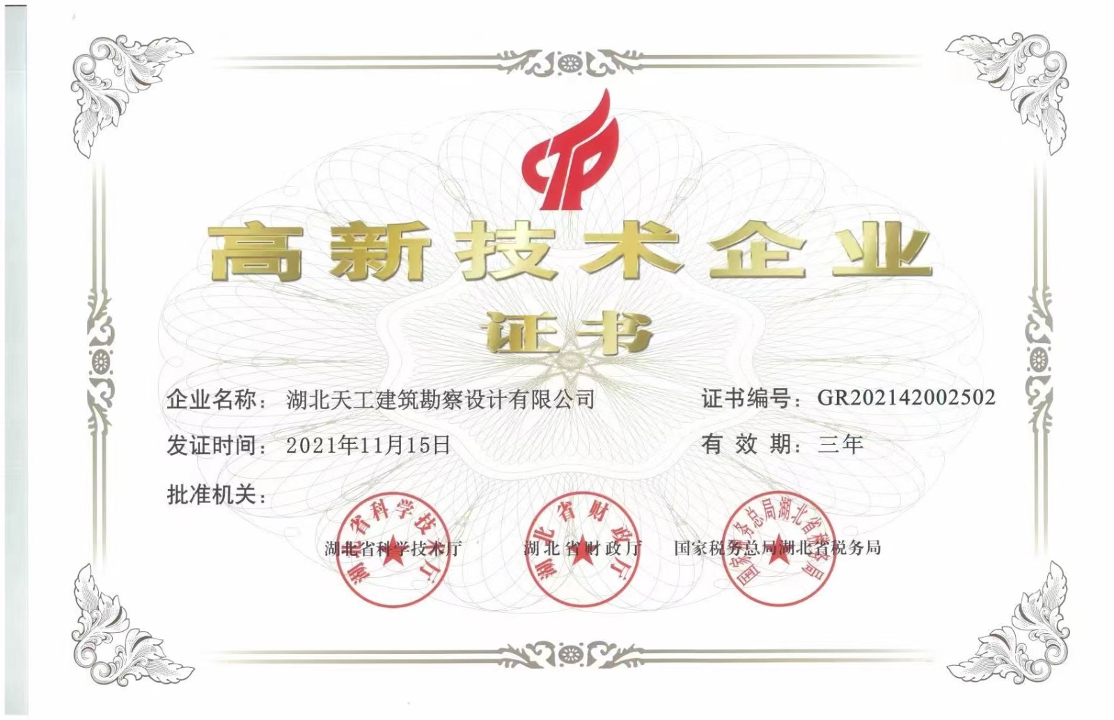 根據《高新技術企業認定管理辦法》(國科發火〔2016〕32號)和《高新技術企業認定管理工作指引》(國科發火〔2016〕195號)有關規定,湖北省公示了認定高新技術企業名單,湖北天工建筑勘察設計有限公司以下簡稱天工設計榜上有名,榮膺“國家高新技術企業”