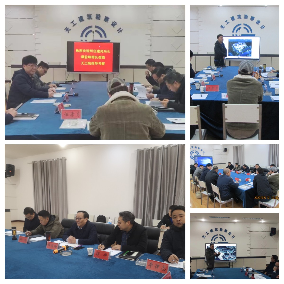 2023年2月13日上午,恩施州住建局局長譚若峰、總工胡平等一行蒞臨華德萊集團旗下的湖北天工建筑勘察設計有限公司(以下簡稱“天工院”)恩施總部考察指導。華德萊集團董事長金會容主持并攜各相關(guān)負責人參會。